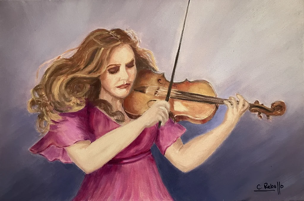 En esta serie, la artista capta el instante íntimo en que nace el sonido, la tensión del arco sobre la cuerda, la concentración y entrega del intérprete, la emoción del canto, el temblor de la voz…. A través de una pincelada sensible y el tratamiento vibrante de la luz, se refuerza la sensación de estar inmersos en ese momento único donde la música se siente en el aire.